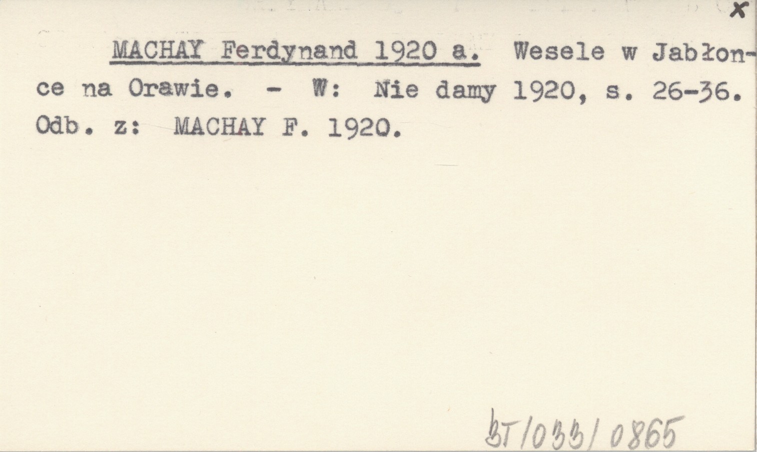 MACHAY Ferdynand 1920 a Wesele w Jabłonce na Orawie.