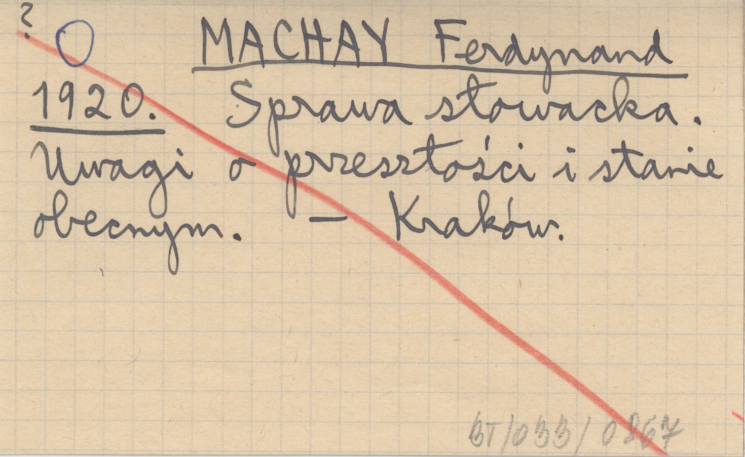 MACHAY Ferdynand 1920 Sprawa słowacka. Uwagi o przeszłości i stanie obecnym.