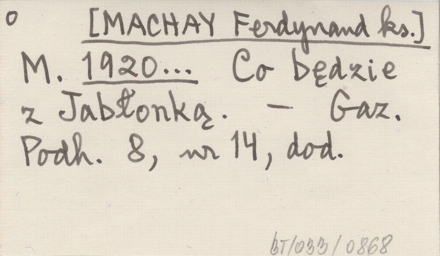 M. [MACHAY Ferdynand ks.] 1920... Co będzie z Jabłonką.