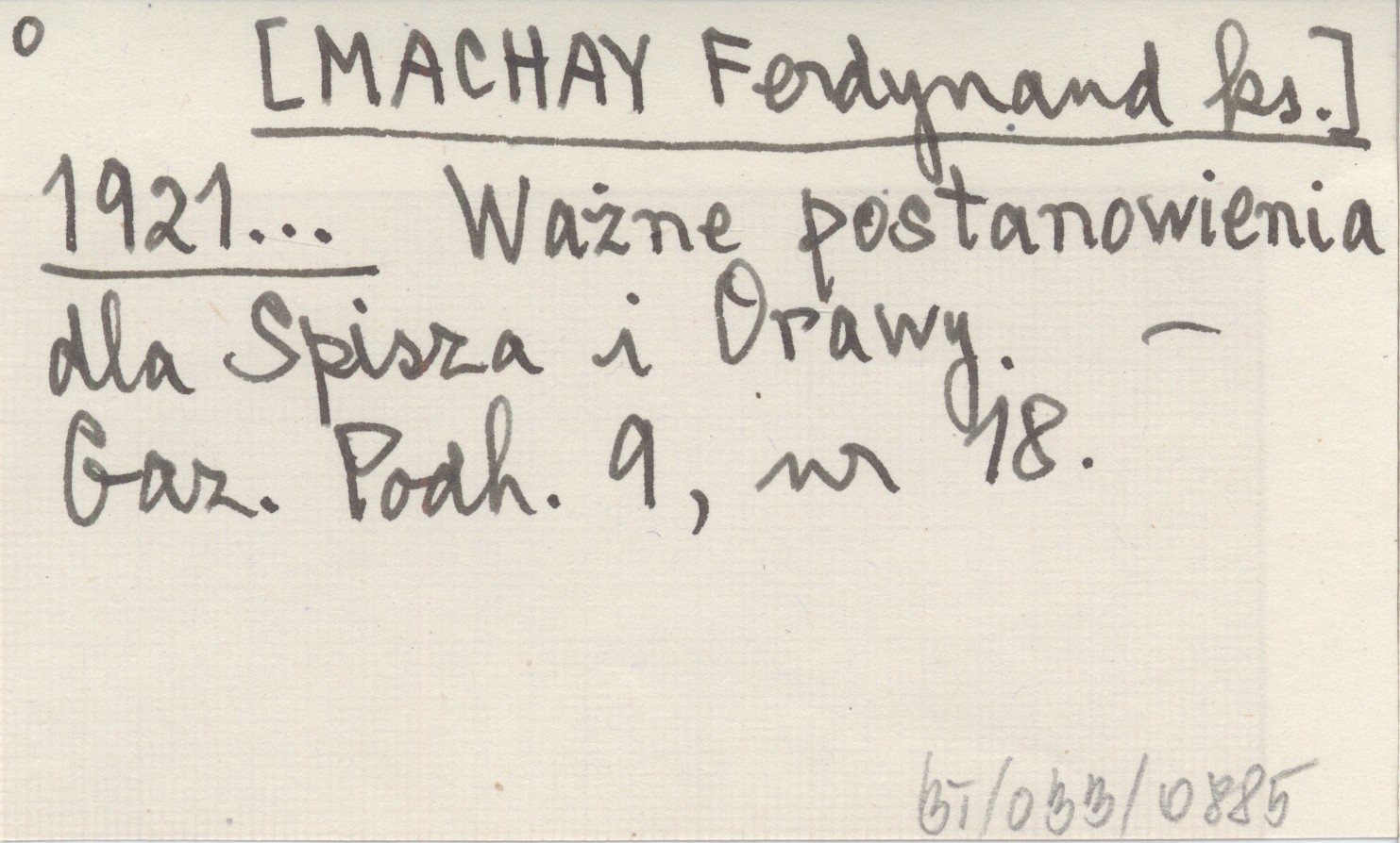 [MACHAY Ferdynand ks.] 1921... Ważne postanowienia dla Spisza i Orawy.