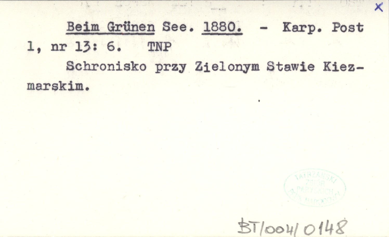 Karpathen-Post, 1, nr 13: 6. Schronisko przy Zielonym Stawie Kiezmarskim.