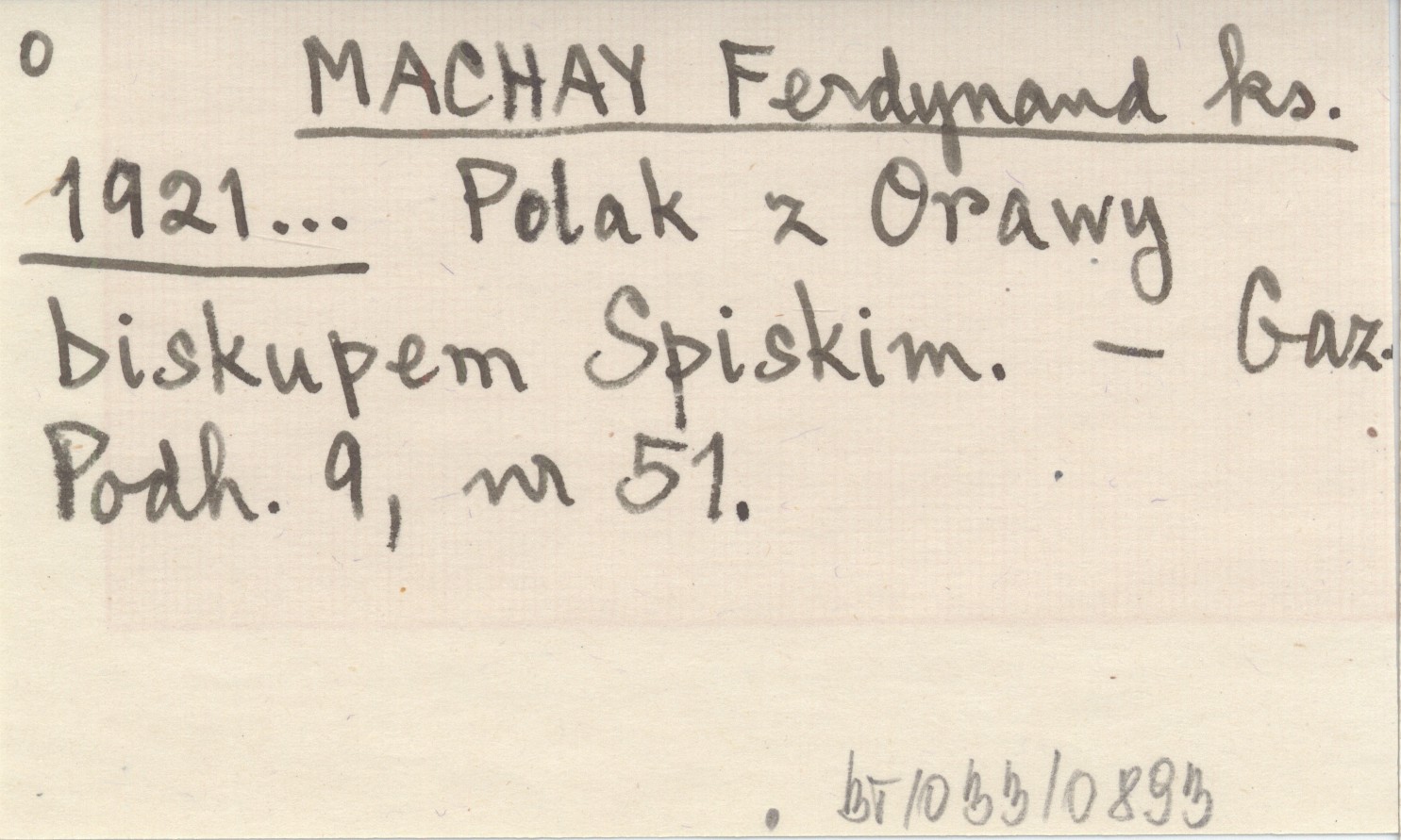 MACHAY Ferdynand ks. 1921... Polak z Orawy biskupem Spiskim.