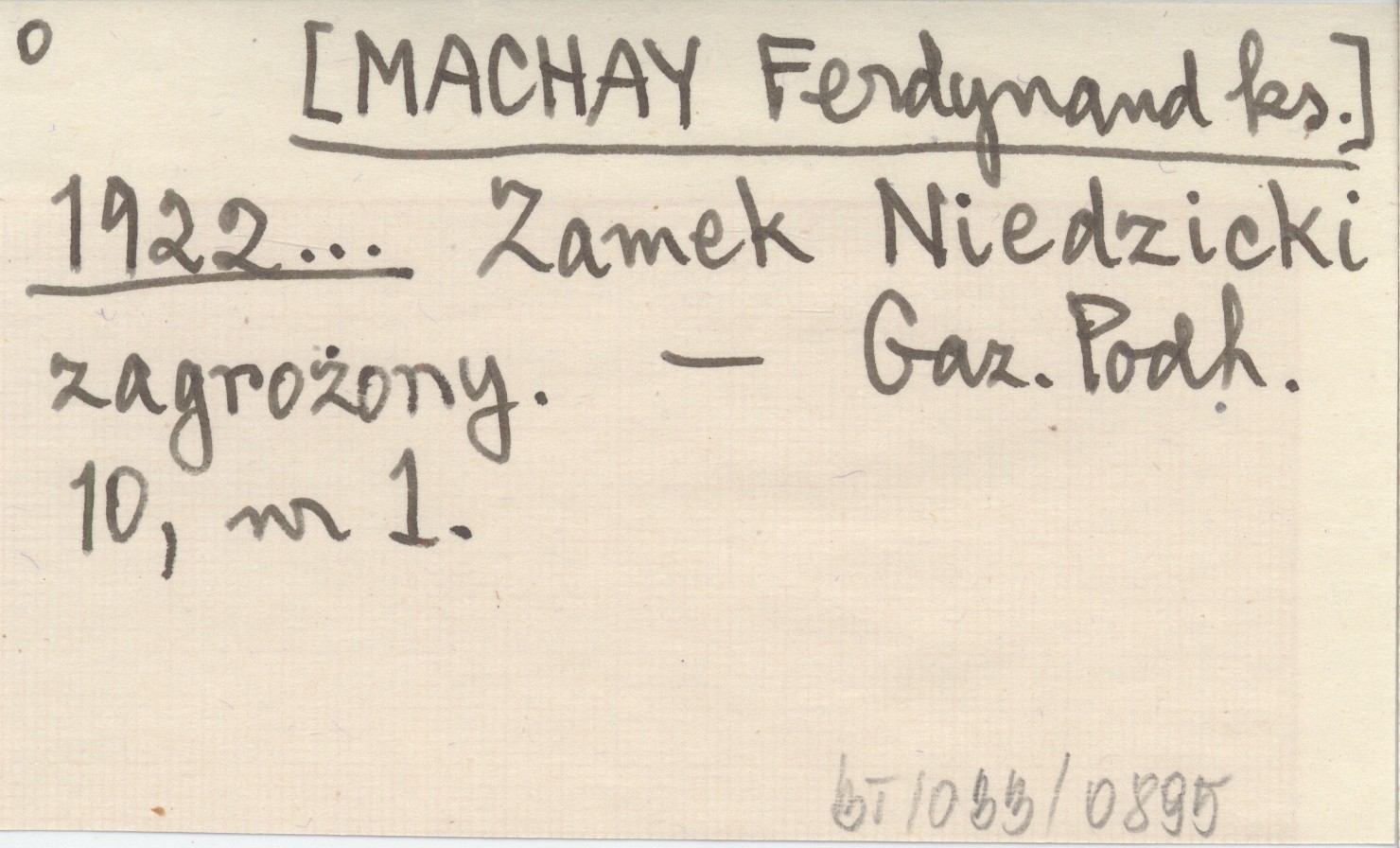 [MACHAY Ferdynand ks.] 1922... Zamek Niedzicki zagrożony.
