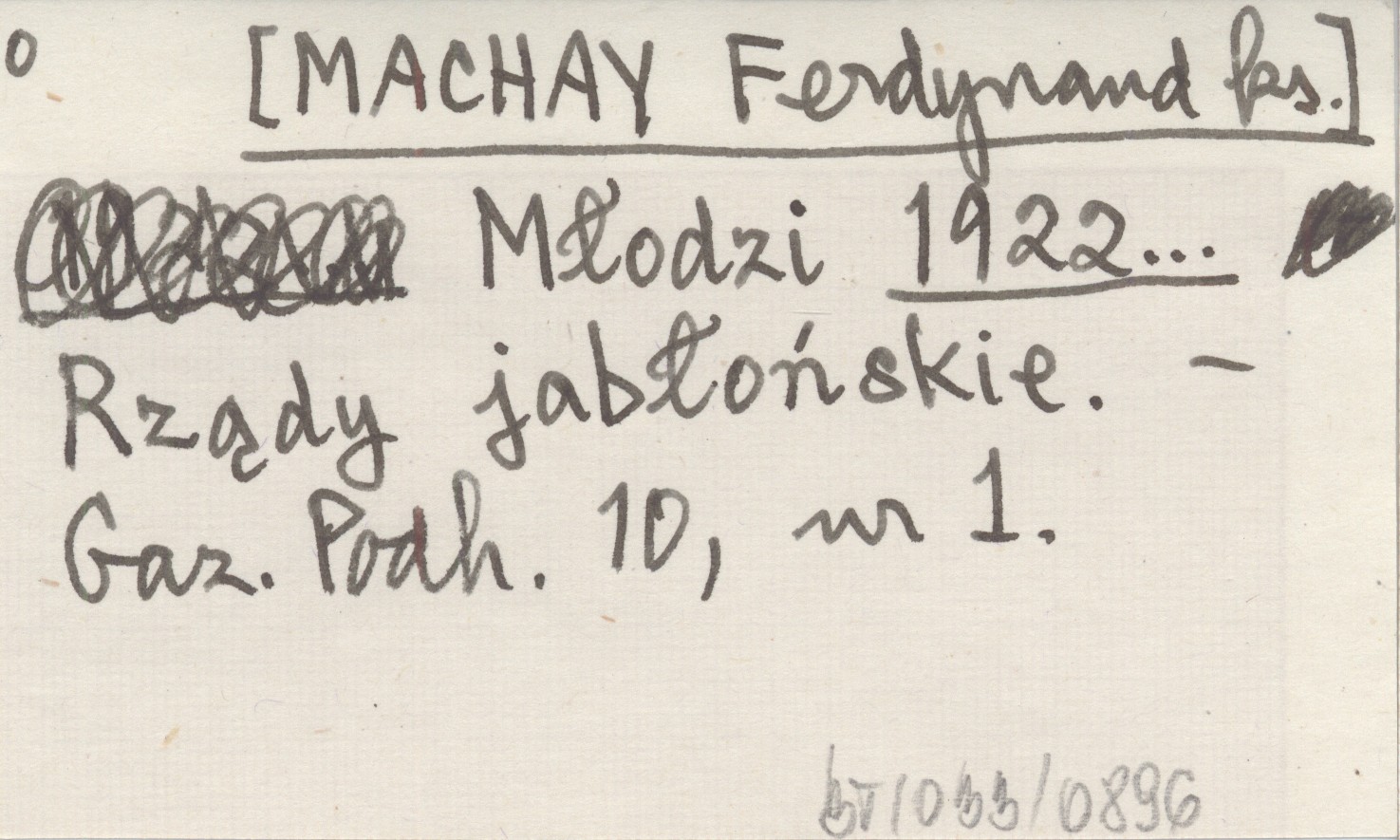 Młodzi [MACHAY Ferdynand ks.] 1922... Rządy jabłońskie.