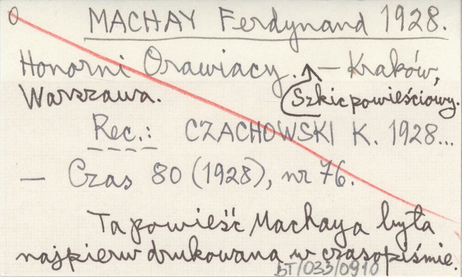 Kraków ; Warszawa ; , Ta powieść Machaya była najpierw drukowana w czasopiśmie. REC: CZACHOWSKI K. 1928... ; Czas 80 (1928), nr 76 ;