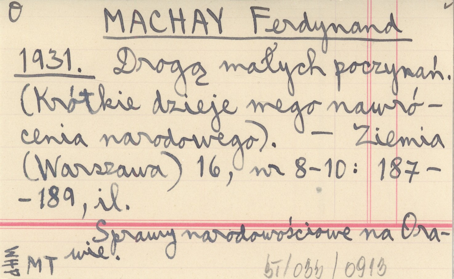 MACHAY Ferdynand 1931 Drogą małych poczynań. (Krótkie dzieje mego nawrócenia narodowego).