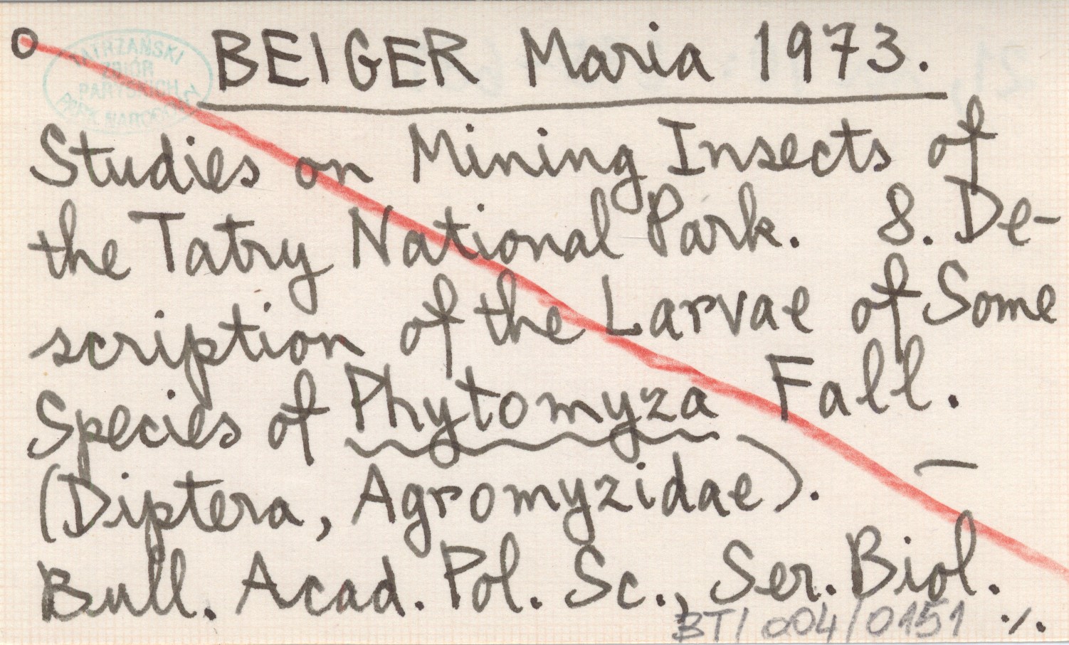 BEIGER Maria 1973 Studies on Mining Insects of the Tatry National Park. 8. Description of the Larvae of Some Species of Phytomyza Fall. (Diptera, Agromyzidae).