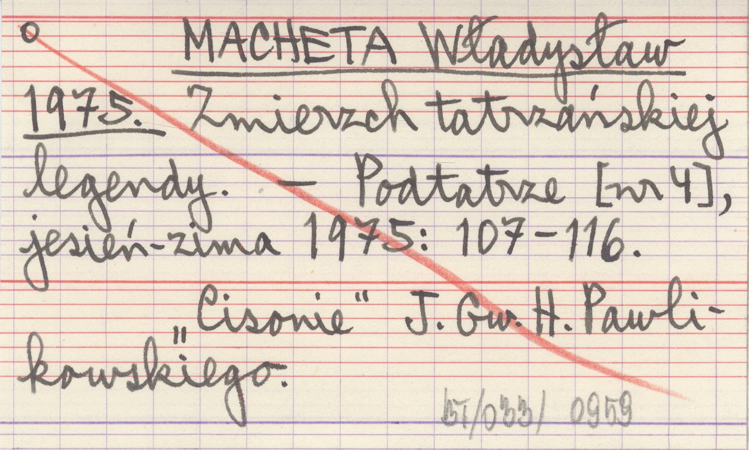 Podtatrze, [nr 4], jesień-zima 1975: 107-116. "Cisonie" J. Gw. H. Pawlikowskiego.