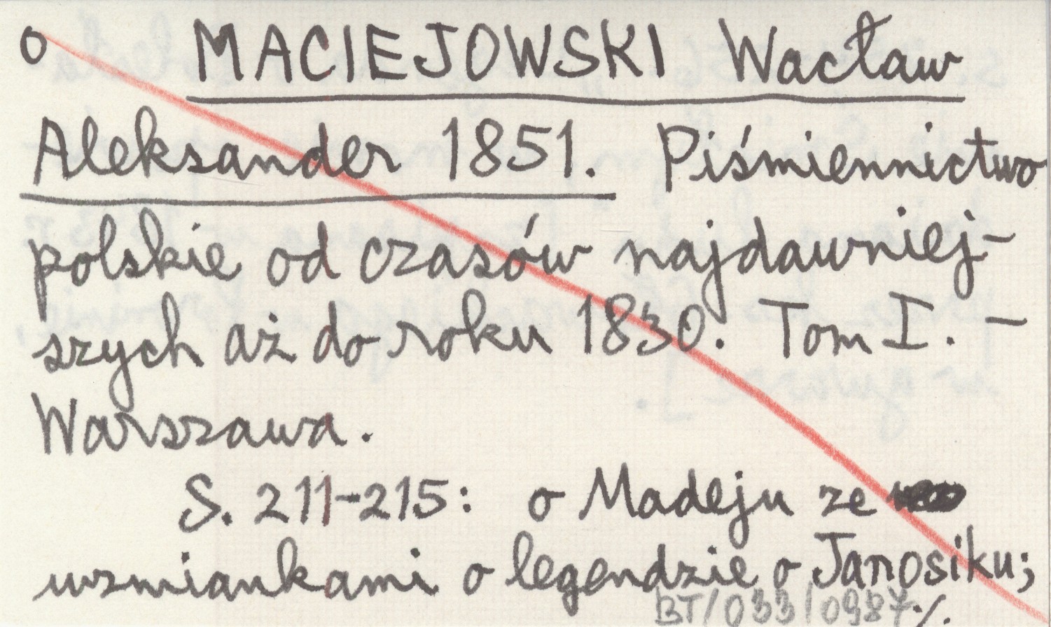 MACIEJOWSKI Wacław Aleksander 1851 Piśmiennictwo polskie od czasów najdawniejszych aż do roku 1830. Tom I.