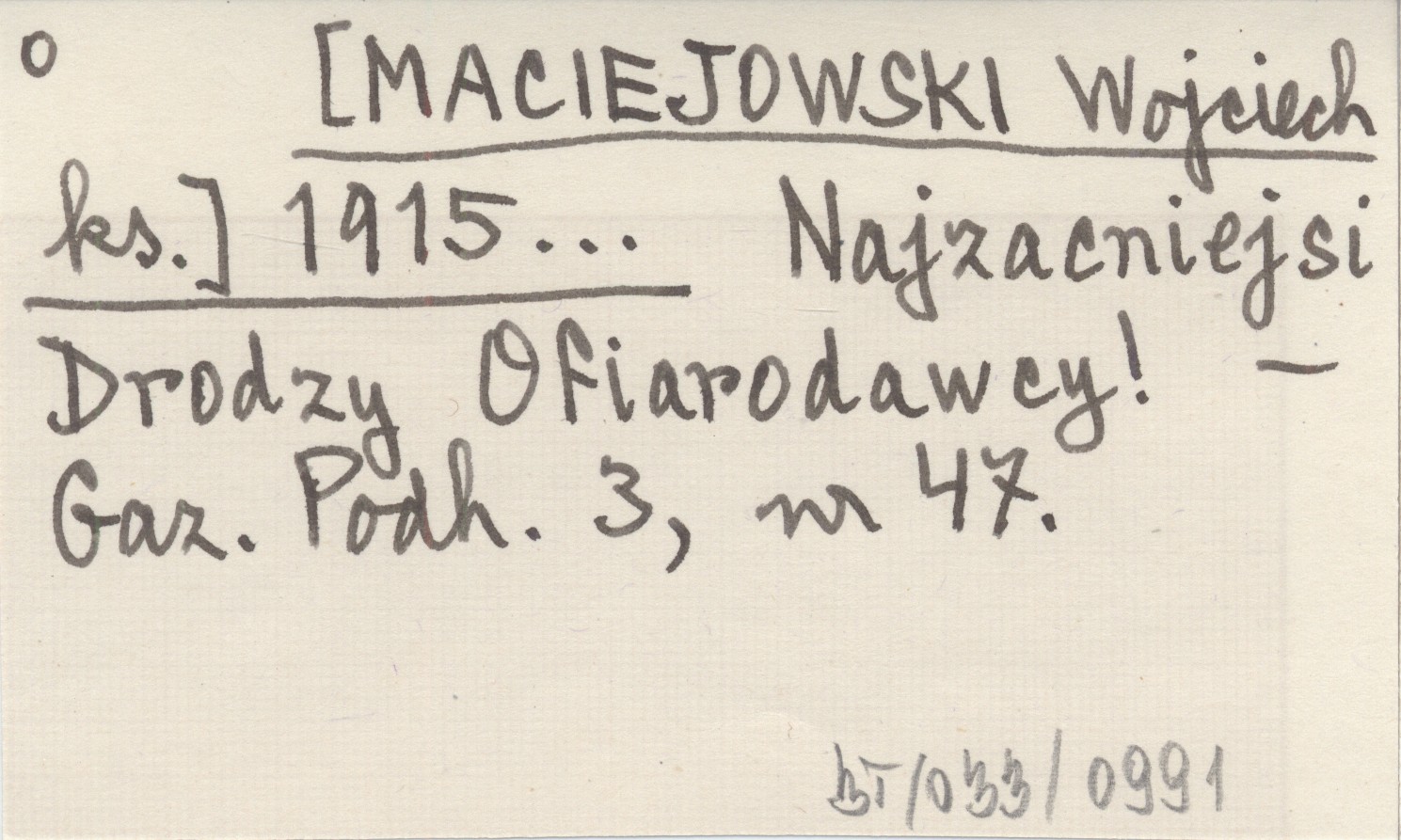 [MACIEJOWSKI Wojciech ks.] 1915... Najzacniejsi Drodzy Ofiarodawcy!