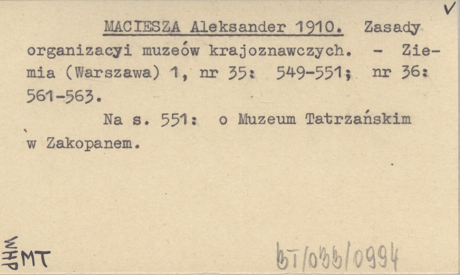 Ziemia (Warszawa) , 1, nr 35: 549-551 ; nr 36: 561-563. Na s. 551: o Muzeum Tatrzańskim w Zakopanem.