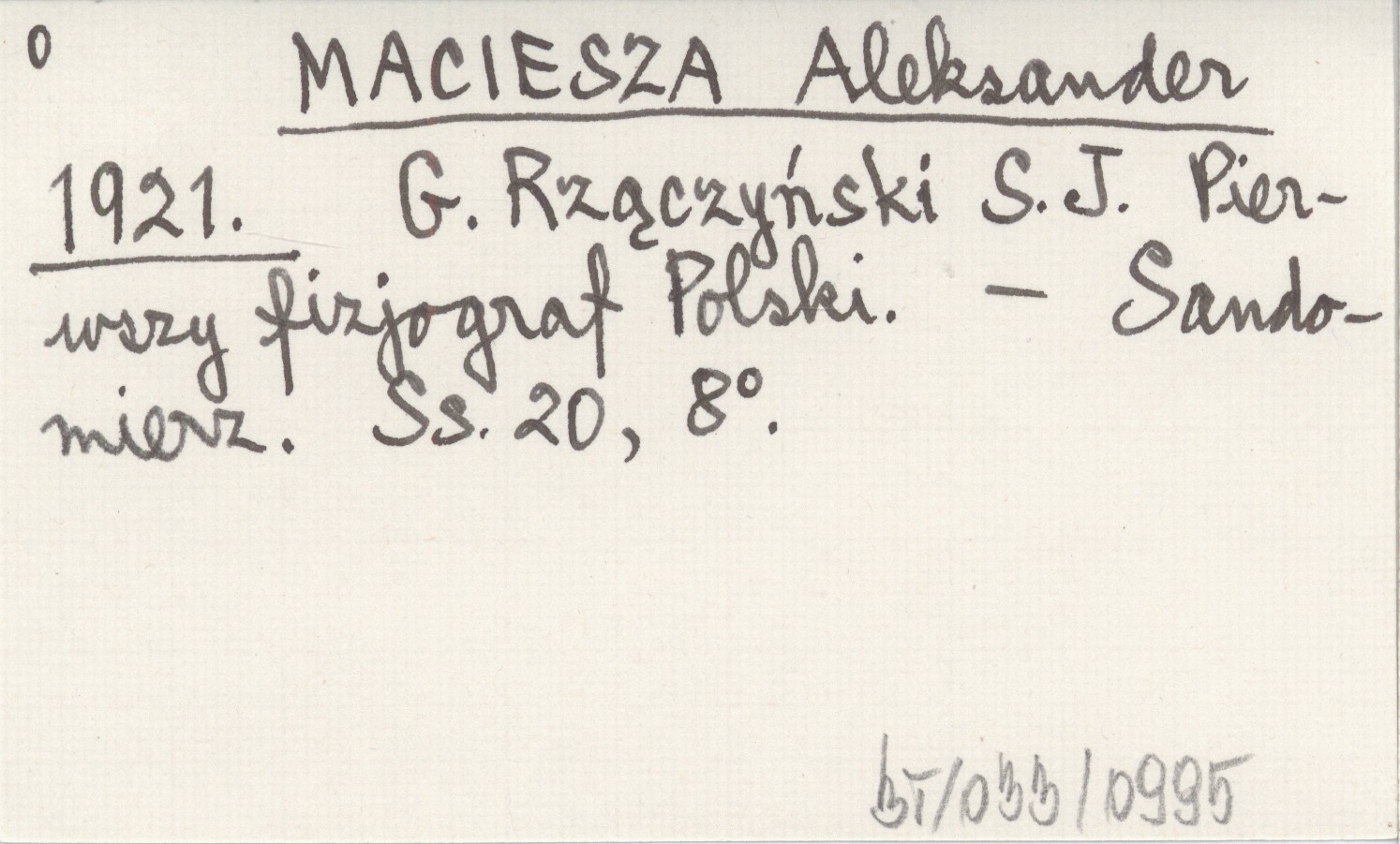 MACIESZA Aleksander 1921 G. Rzączyński S. J. Pierwszy fizjograf Polski.
