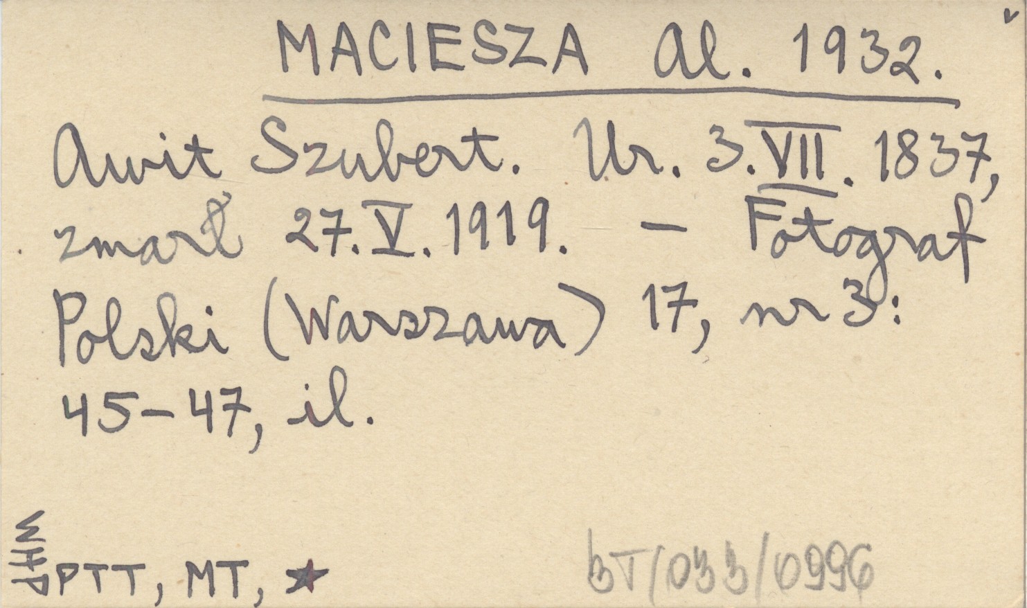 MACIESZA Al. 1932 Awit Szubert. Ur. 3.VII.1837, zmarł 27.V.1919.