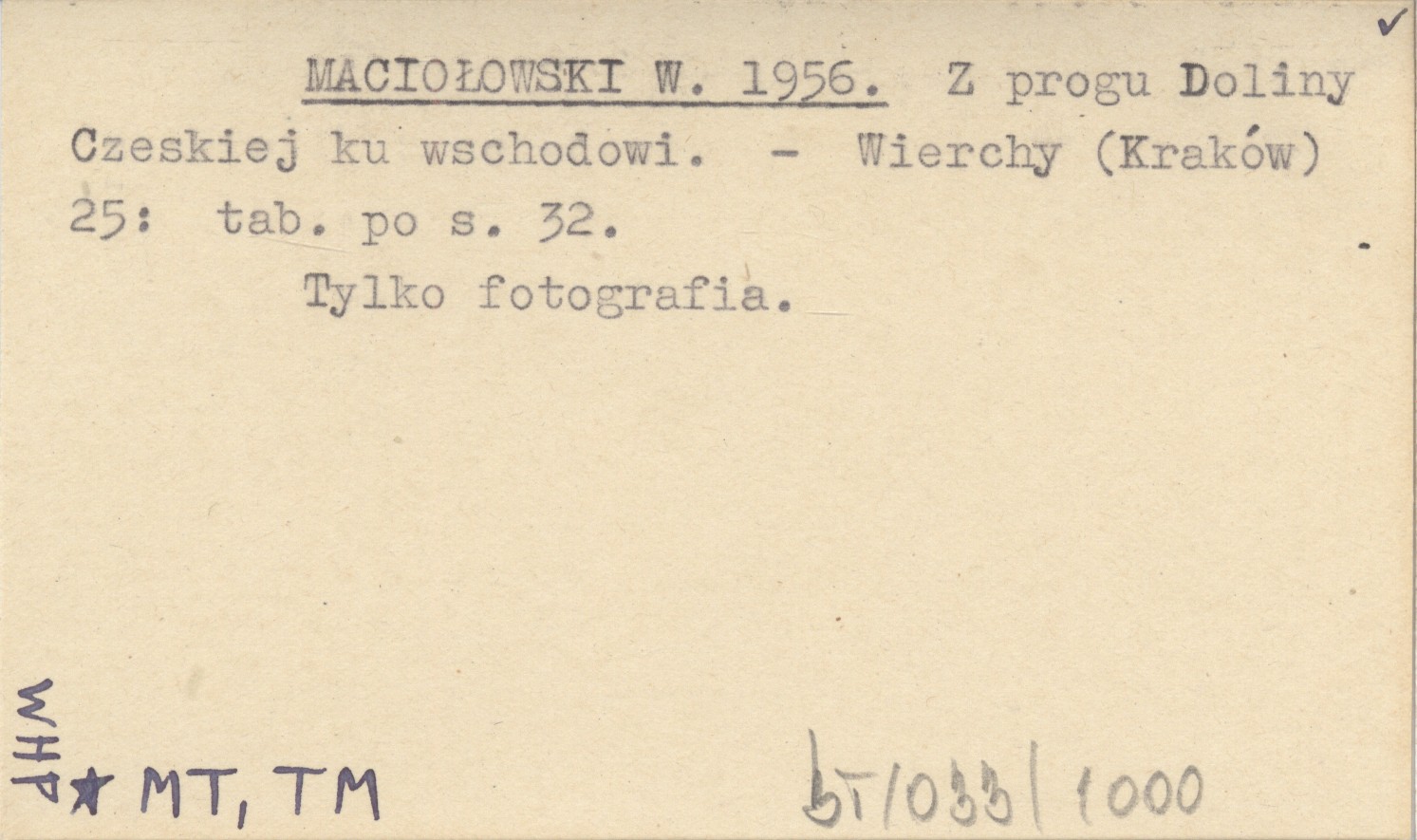 MACIOŁOWSKI W. 1956 Z progu Doliny Czeskiej ku wschodowi.