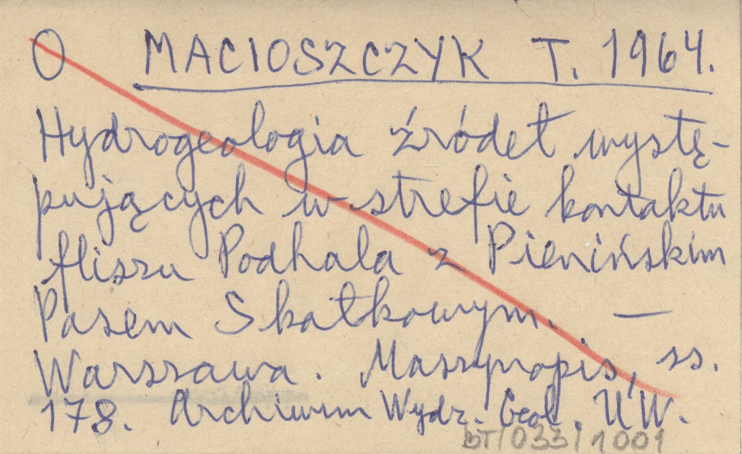 MACIOSZCZYK T. 1964 Hydrogeologia źródeł występujących w strefie kontaktu fliszu Podhala z Pienińskim Pasem Skałkowym.