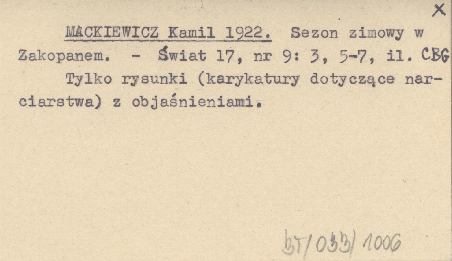 Świat, 17, nr 9: 3, 5-7, il. Tylko rysunki (karykatury dotyczące narciarstwa) z objaśnieniami.