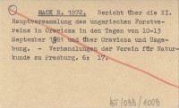 MACK E. 1872 Bericht über die XI. Hauptversammlung des ungarischen Forstvereins in Oravicza in den Tagen von 10-13 September 1861 und über Oravicza und Umgebung.