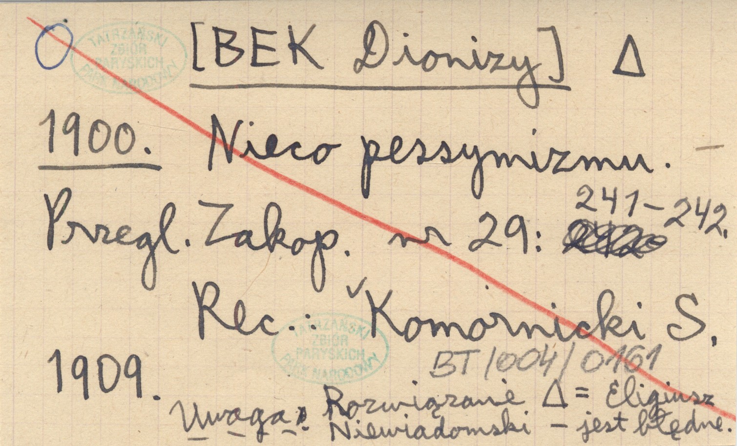 Przegląd Zakopiański, Nr 29: 241-242. Rozwiązanie = Eligiusz Niewiadomski - jest błędne. REC: KOMORNICKI S. 1909
