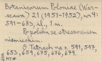 Acta Societatis Botanicorum Poloniae (Warszawa) , 21 (1951-1952), nr 4: 591-683, il., 1 m. O Tatrach na s. 591, 597, 653, 659, 675-676, 679. Po polsku ze streszczeniem niemieckim.