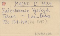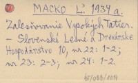 MACKO Ľ. 1934 a Zalesňovanie Vysokých Tatier.