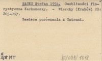 MACKO Stefan 1954 Osobliwości florystyczne Karkonoszy.