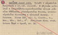 MACŮREK Josef 1959 Valaši v západních Karpatech v 15.-18. století. K dějinám osídlení a hospodářsko-společenského vývoje jižního Těšínska, jihozápadního Polska, severozápadního Slovenska a východní Moravy.