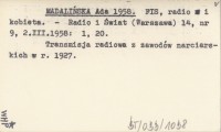 MADALIŃSKA Ada 1958 FIS, radio i kobieta.