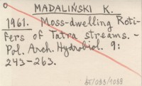 MADALIŃSKI K. 1961 Moss-dwelling Rotifers of Tatra streams.