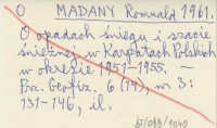 MADANY Romuald 1961 O opadach śniegu i szacie śnieżnej w Karpatach Polskich w okresie 1951-1955.