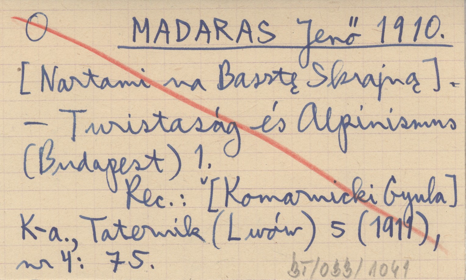 Turistaság és Alpinismus (Budapest) , 1. REC: [KOMARNICKI Gyula] K-a., Taternik (Lwów) 5 (1911), nr 4: 75.