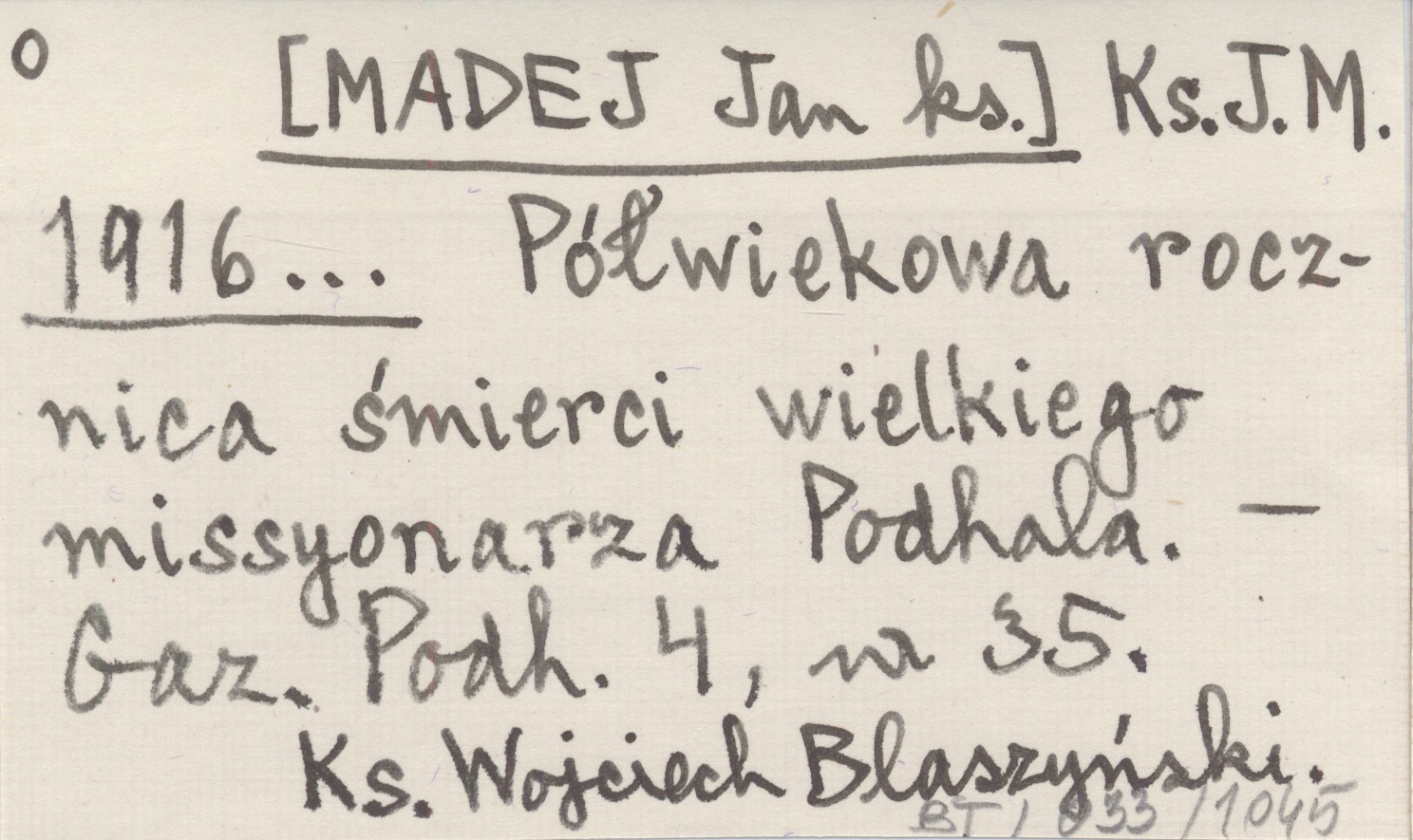 Ks.J.M. [MADEJ Jan ks.] 1916... Półwiekowa rocznica śmierci wielkiego missyonarza Podhala.