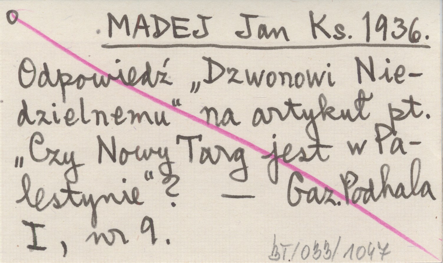 MADEJ Jan ks. 1936 Odpowiedź "Dzwonowi Niedzielnemu" na artykuł pt. "Czy Nowy Targ jest w Palestynie"?