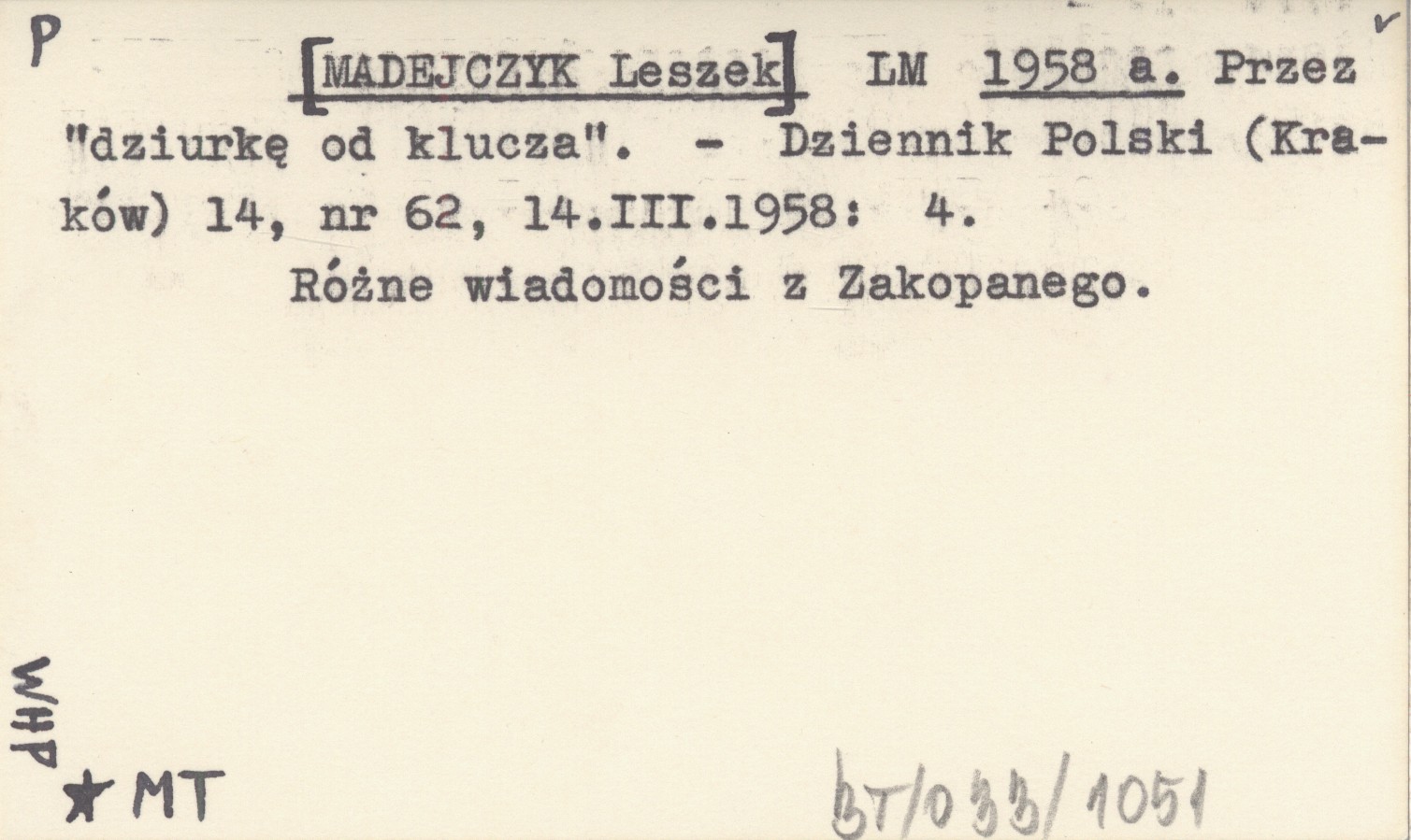 LM [MADEJCZYK Leszek] 1958 a Przez "dziurkę od klucza".
