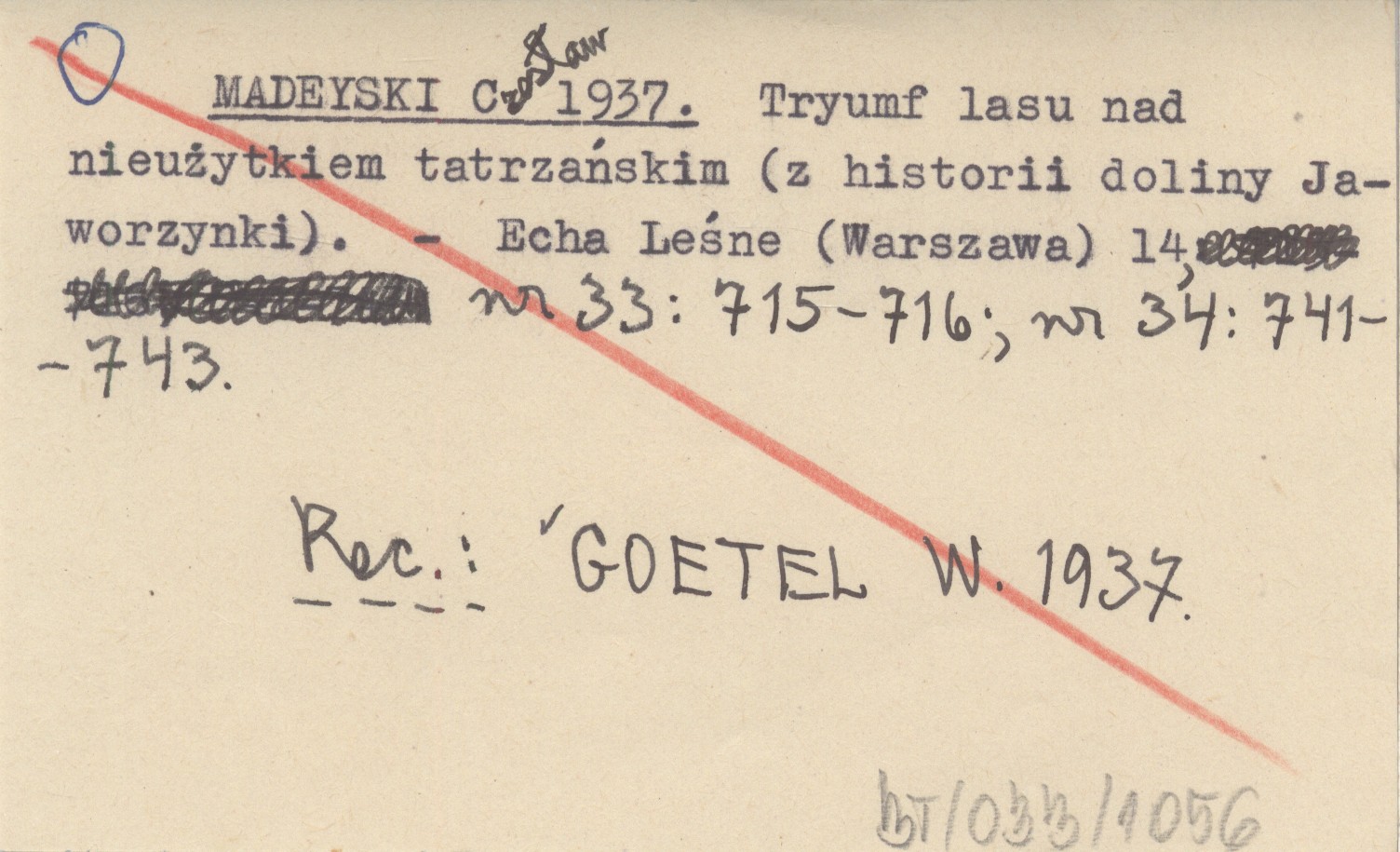 MADEYSKI Czesław 1937 Tryumf lasu nad nieużytkiem tatrzańskim (z historii doliny Jaworzynki).