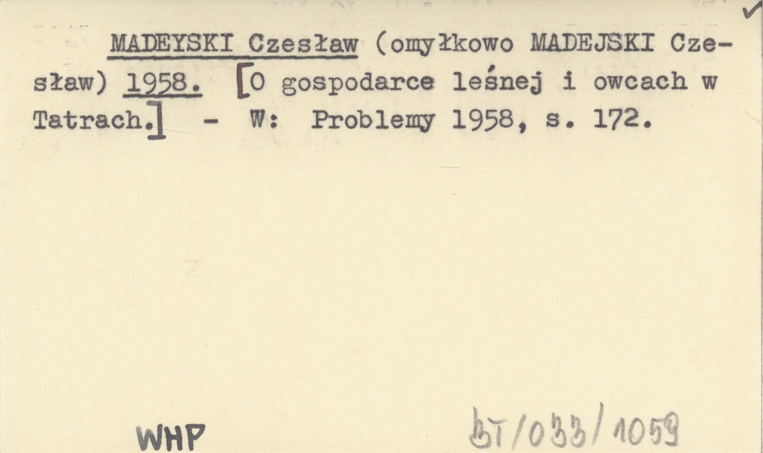 Problemy 1958. , S. 172. (omyłkowo MADEJSKI Czesław)