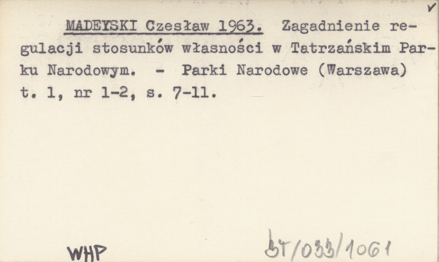 MADEYSKI Czesław 1963 Zagadnienie regulacji stosunków własności w Tatrzańskim Parku Narodowym.