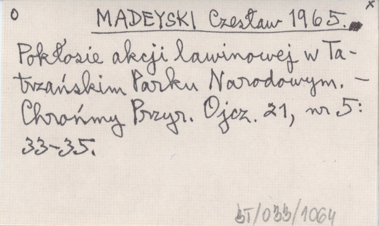 MADEYSKI Czesław 1965 Pokłosie akcji lawinowej w Tatrzańskim Parku Narodowym.