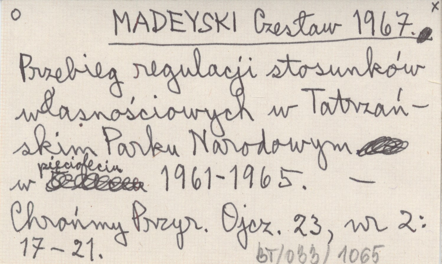 MADEYSKI Czesław 1967 Przebieg regulacji stosunków własnościowych w Tatrzańskim Parku Narodowym w pięcioleciu 1961-1965.