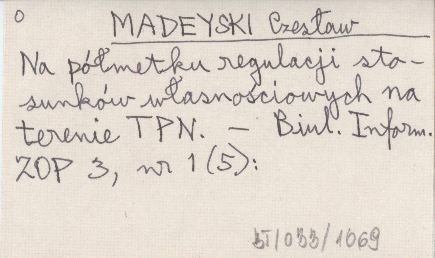 MADEYSKI Czesław Na półmetku regulacji stosunków własnościowych na terenie TPN.