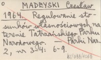 MADEYSKI Czesław 1964 Regulowanie stosunków własnościowych na terenie Tatrzańskiego Parku Narodowego.