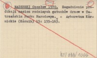 MADEYSKI Czesław 1970 Zagadnienie produkcji nasion rodzimych gatunków drzew w Tatrzańskim Parku Narodowym.