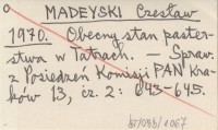 MADEYSKI Czesław 1970 Obecny stan pasterstwa w Tatrach.