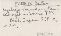 MADEYSKI Czesław Regulacja stosunków własnościowych na terenie TPN.