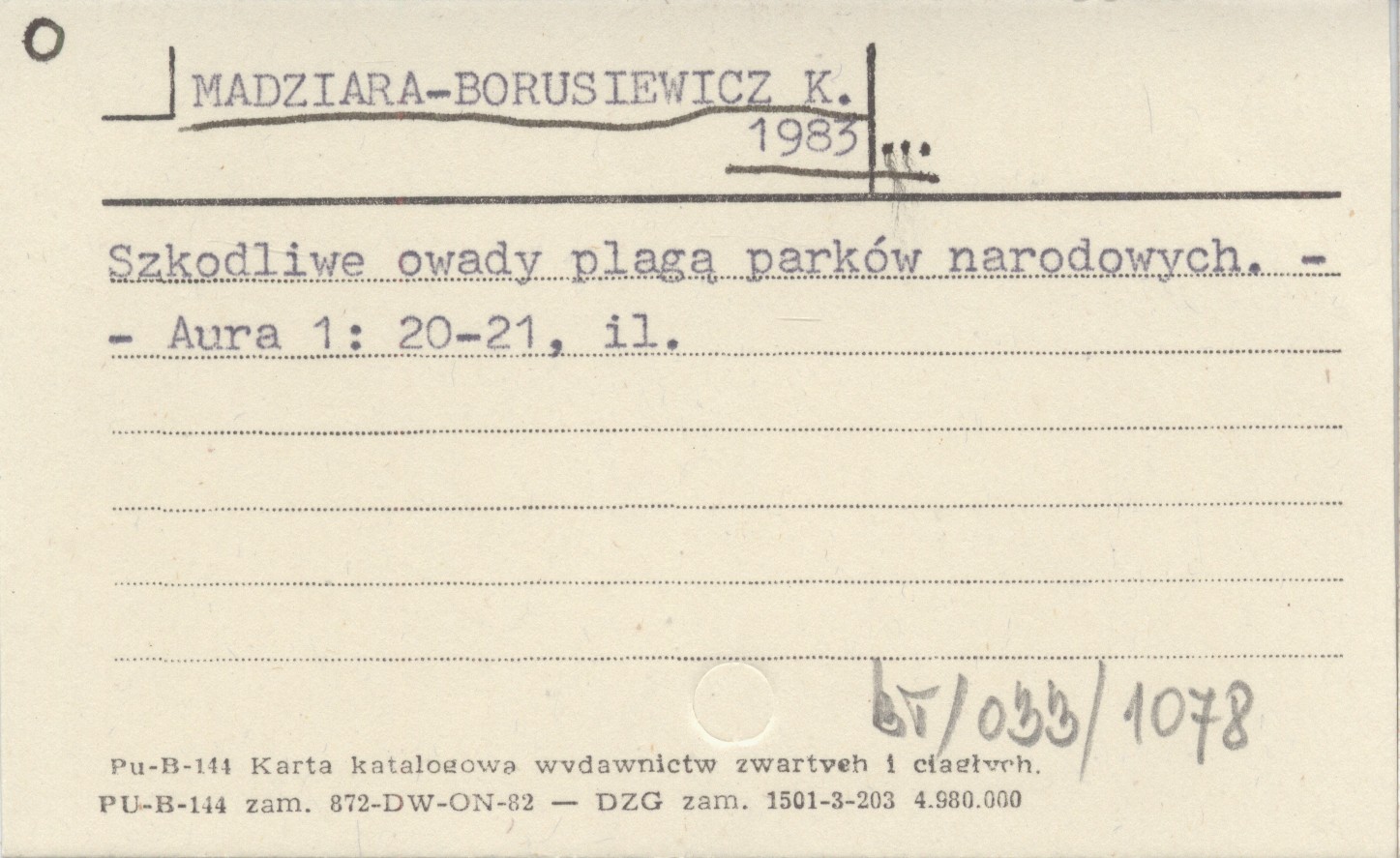 MADZIARA-BORUSIEWICZ K. 1983... Szkodliwe owady plagą parków narodowych.