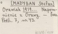 Orawiak [MADYGAN Stefan] 1919... Napomnienie z Orawy.