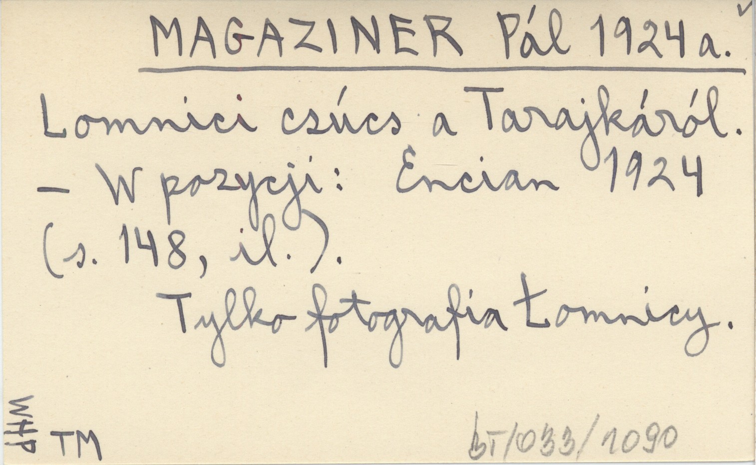 Encian 1924. , S. 148, il. Tylko fotografia Łomnicy.