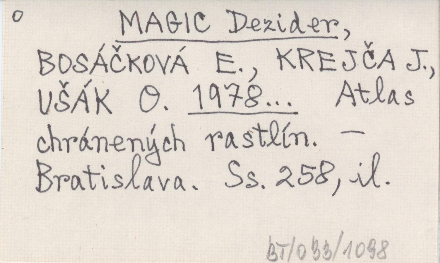 MAGIC Dezider BOSÁČKOVÁ, E. ; KREJČA, J. ; UŠÁK, O. ; 1978... Atlas chránených rastlín.