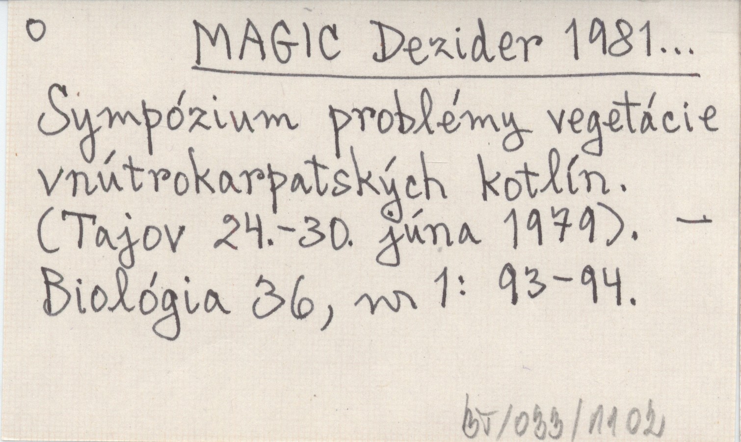 MAGIC Dezider 1981... Sympózium problémy vegetácie vnútrokarpatských kotlín. (Tajov 24.-30. júna 1979).