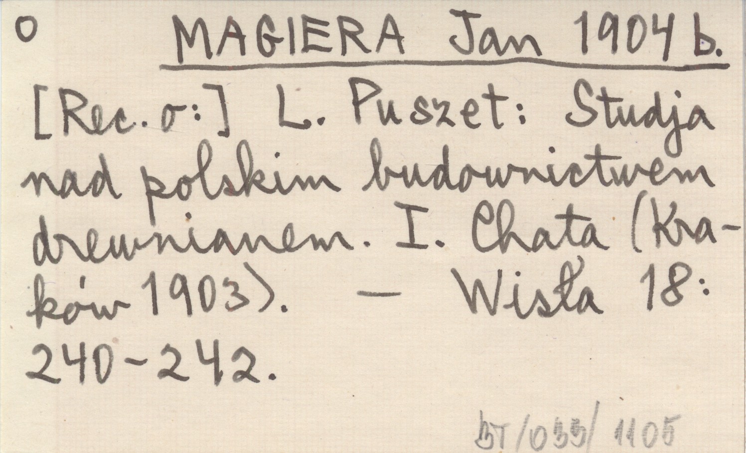 MAGIERA Jan 1904 b L. Puszet: Studja nad polskim budownictwem drewnianem. I. Chata (Kraków 1903).