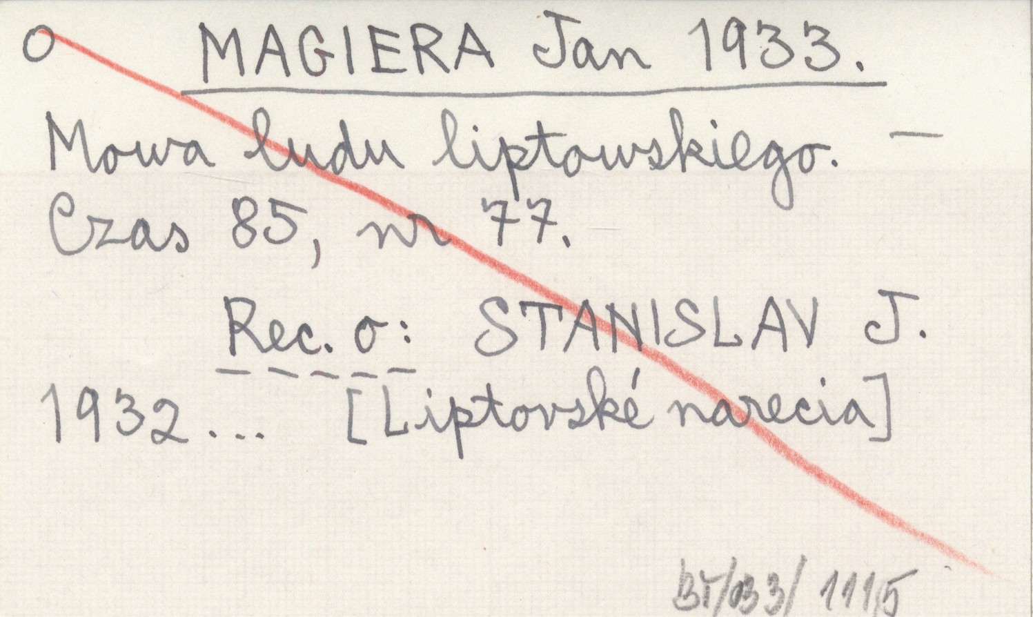 Czas, 85, nr 77, 2 IV 1933. Rec. z: Stanislav Jan, Liptovske narecia. Turč.Sv.Martin 1932.